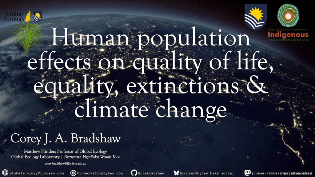 Professor Corey Bradshaw spoke at a public event organised by Sustainable Population Australia in Adelaide on 10 September 2025 (watch)